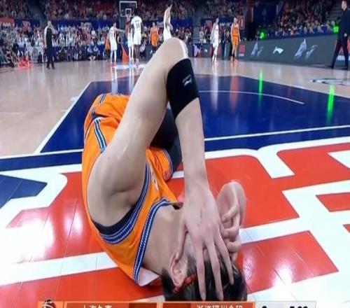 比赛第二节,上海球员张镇麟在上篮时手肘意外打到王哲林,后者随后痛苦倒地。