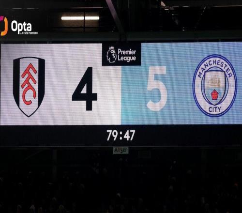 北京时间12月3日,在英超第14轮的比赛中,富勒姆在一度0-3甚至1-5落后的情况下,最终主场4-5惜败于曼城。赛后来自Opta的统计指出,富勒姆也成为了英超历史上第三支在主场单场比赛打